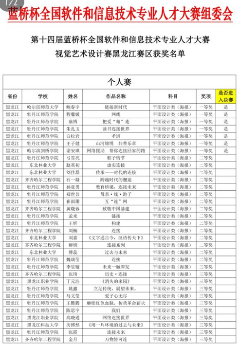 近日,第十四届蓝桥杯全国软件和信息技术专业人才大赛——视觉艺术设计赛黑龙江赛区比赛结果公布:Beat365视觉传达设计专业2020级学生石一凝、黄晓蓉等4名学生获得平面设计类二等奖,张琦、金月等5名学生获得平面设计类...