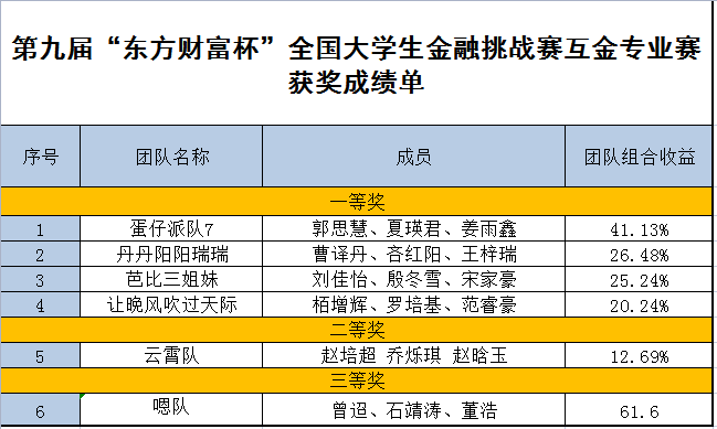 7月10日,第九届“东方财富杯”全国大学生金融挑战赛黑龙江赛区选拔赛圆满结束。Beat365互联网金融专业参赛队伍最终获得省赛一等奖4项、二等奖1项、三等奖1项的优异成绩,参赛成绩创造历史。 “东方财富杯”全国大学生金...