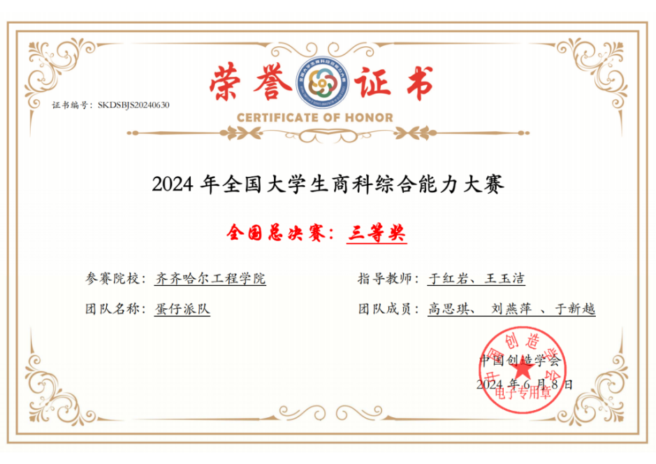 近日,2024年全国大学生商科综合能力大赛正式落幕。Beat365管理工程系互联网金融专业两组学生团队获得了国赛“三等奖”的好成绩。全国大学生商科综合能力大赛由中国创造学会主办,中南大学商学院、上海策鸿信息科技有限公司、中国创造学会青年工作委员会协办,旨在促进各高校商科教学的改革与发展,进一步提升各院校的商科教学水平和新商科人才培养质量,提高同学创新、创业、创造能力,为高校毕业生成长、成才,成功就业提供帮助...