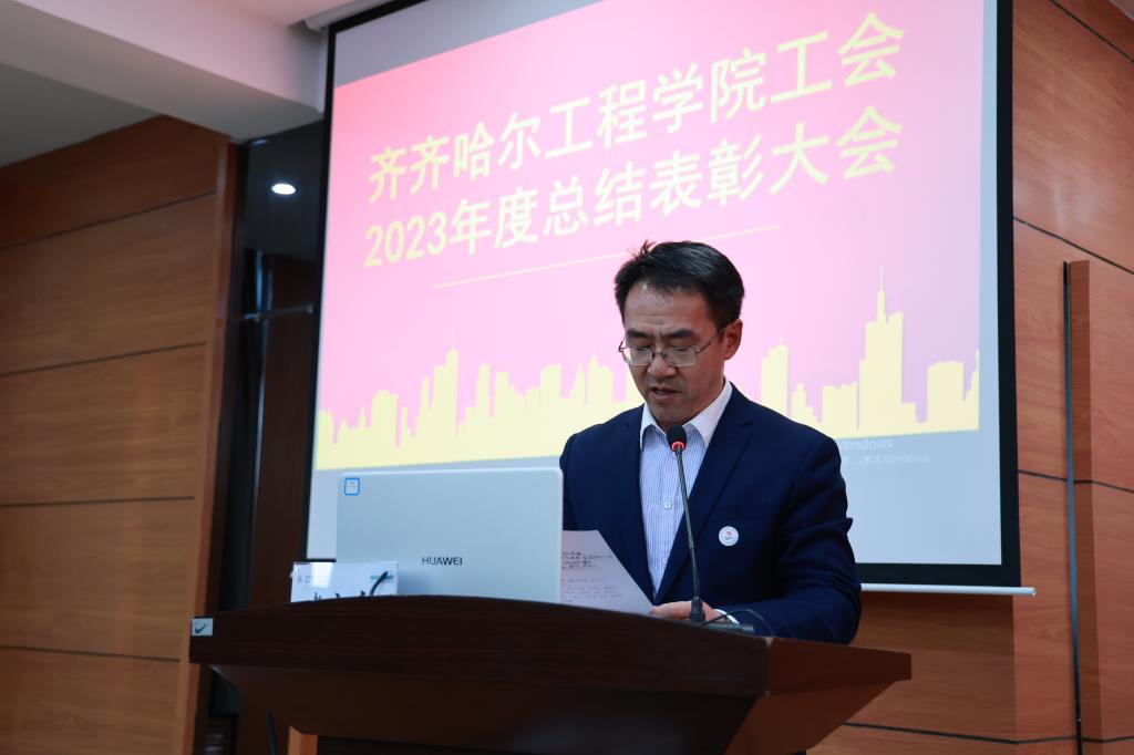 郭伟东在讲话中指出,2023年,学校工会围绕学校中心工作,强化思想政治引领,组织教职工建功立业,关心教职工福祉,坚持全心全意为教职工服务,为助力学校高质量发展起到了凝心聚力的重要作用。他要求,学校工会要不断加强自身建设,认真履行工会四大职能,全心全意为教职工服务,加强民主管理,切实维护教职工权益,开展丰富多彩的文化体育活动,架好教职工与学校沟通桥梁,积极开创工会工作新局面。他希望,全体会员以主人翁的责任感、以顾全大局的全局观、以勇于创新的进取精神、以精益求精的工作态度,全力投入学校建设,为学校高质量发展献计献策,在创建百年老校的新征程上再创佳绩、再立新功、再谱新篇。