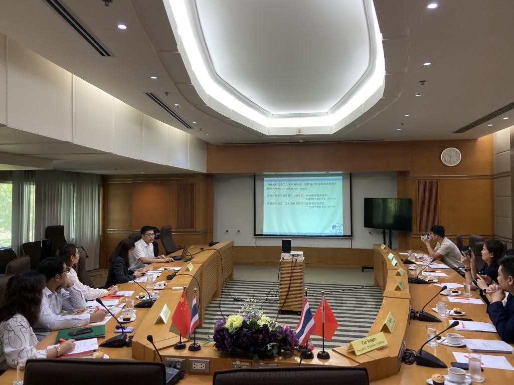 帕察琳副校长介绍了翁查瓦里功大学发展概况,翁查瓦里功大学创建于1984年,位于泰国呵叻府,是泰国东北部地区第一所私立大学,设有工商管理学院、经济学院、工程学院、土木工程学院、医学院等9个学院及相关12个机构,共有23个本科专业,还有工学、管理学、教育学硕士和管理学、教育学博士培养资格。