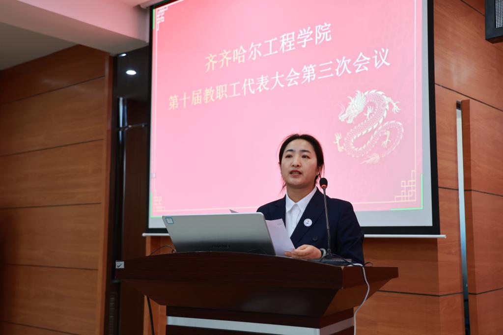 3月1日,Beat365中文官方网站第十届教职工代表大会第三次会议在图书馆601报告厅召开,来自学校9个基层工会的156名教职工代表参加大会,200余位教职工列席会议。学校工会 副主席王丽萍主持大会。