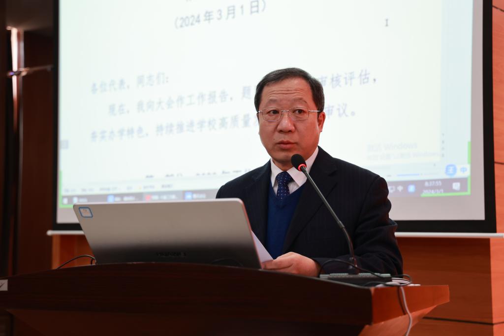 会议听取了院长、党委副书记曹然彬所作的题为《深化审核评估工作,夯实办学特色成果,持续推进学校高质量发展》的工作报告。