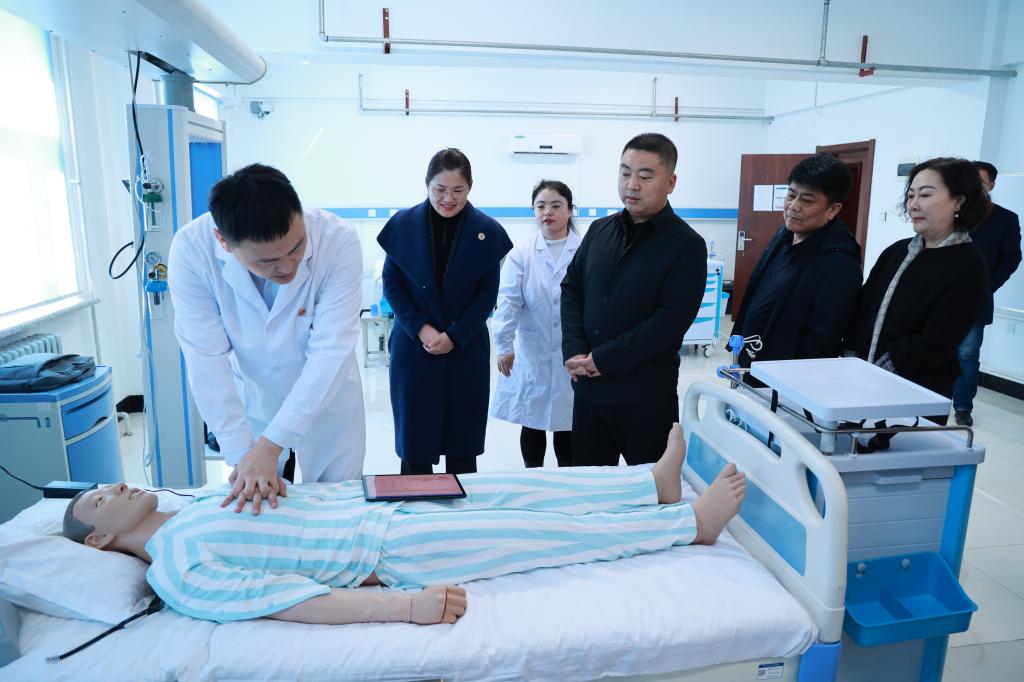 座谈会前,王云峰一行参观了学校齐三机床、校内大健康教育实训教学中心等实训基地。