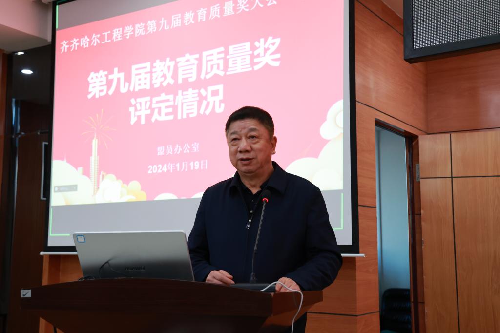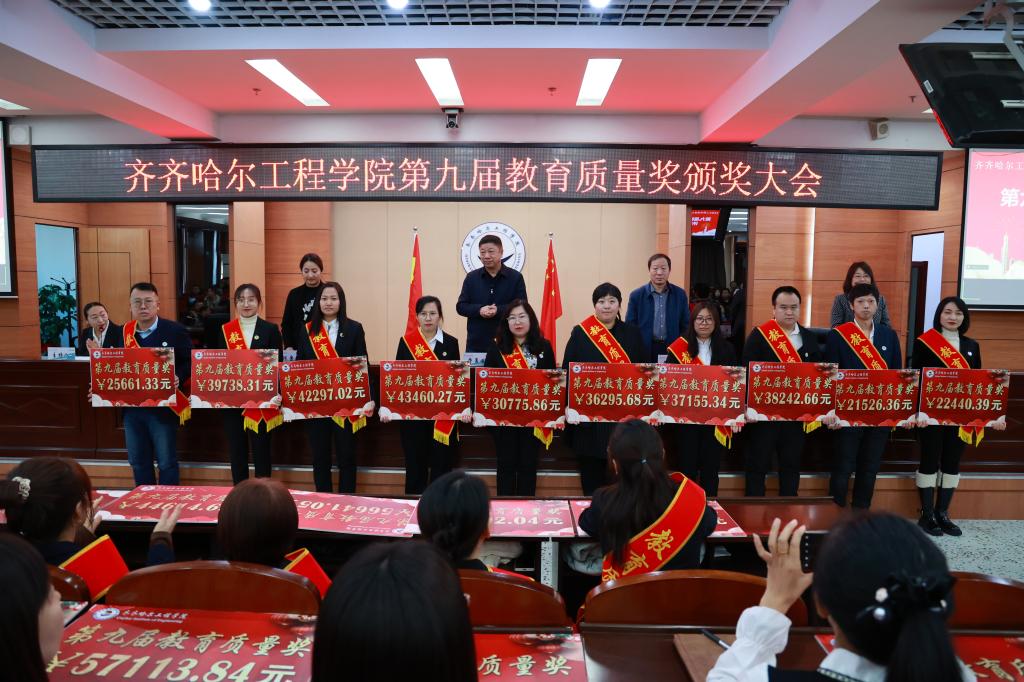 院长、党委副书记曹然彬宣读《关于颁发Beat365中文官方网站第九届教育质量奖的决定》,决定授予机电工程系曹克晶等197名盟员第九届教育质量奖,奖励总额共计440.8万元,个人最高奖励金额达6万元。