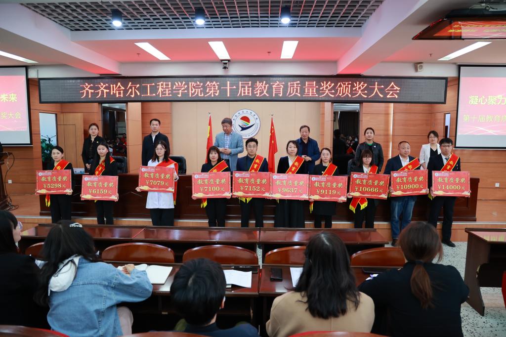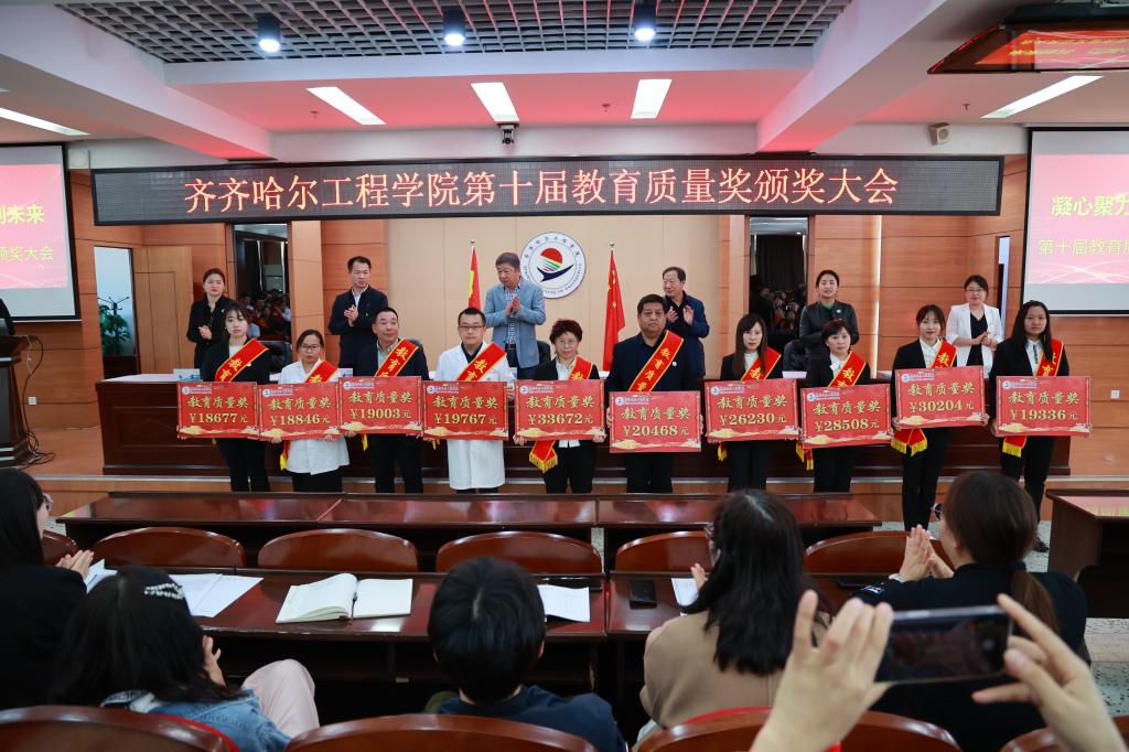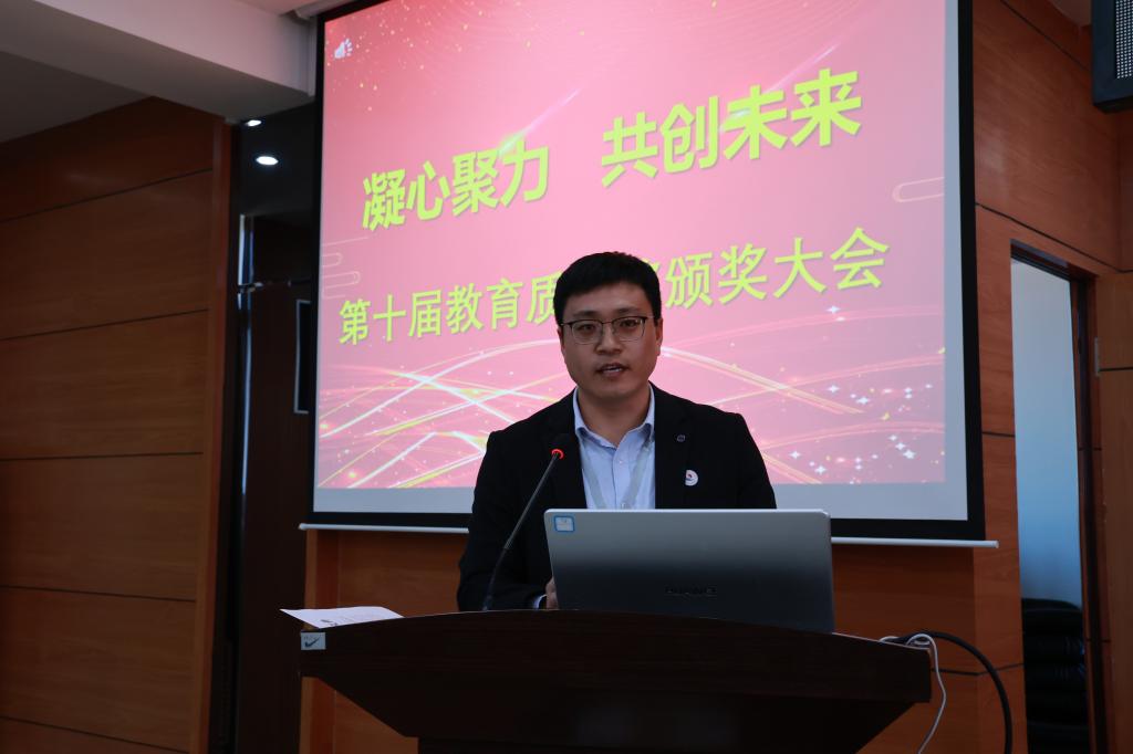 4月30日下午,学校第十届教育质量奖颁奖大会在图书馆601报告厅举行。理事长曹勇安、院长曹然彬、党委书记郭伟东、常务副院长陈景鑫、副院长白雪、副院长张静出席会议。全面质量办公室副主任张洪岩主持,300余名教职工代表参会。