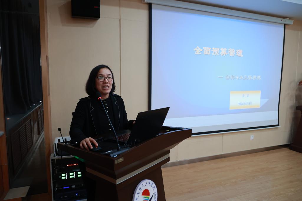 姜岩围绕“全面预算管理”,介绍了学校的办学模式,并详细说明了学校的管理机制、学校审核评估重点工作以及教育教学质量奖等方面内容。