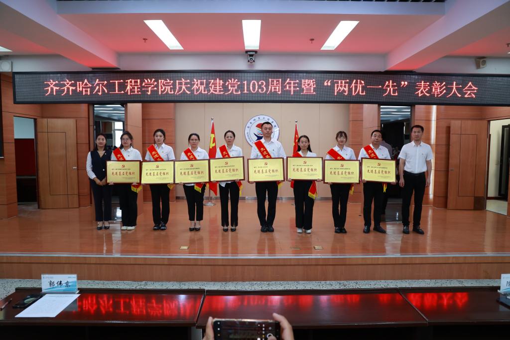 为庆祝中国共产党建党103周年,表彰先进典型,激励全校各级党组织和广大党员进一步统一思想,鼓舞干劲,凝聚力量,6月28日,学校党委在图书馆601报告厅举行庆祝建党103周年暨“两优一先”表彰大会。校级党员领导干部、受表彰的先进集体代表、优秀个人以及在校师生党员参会。