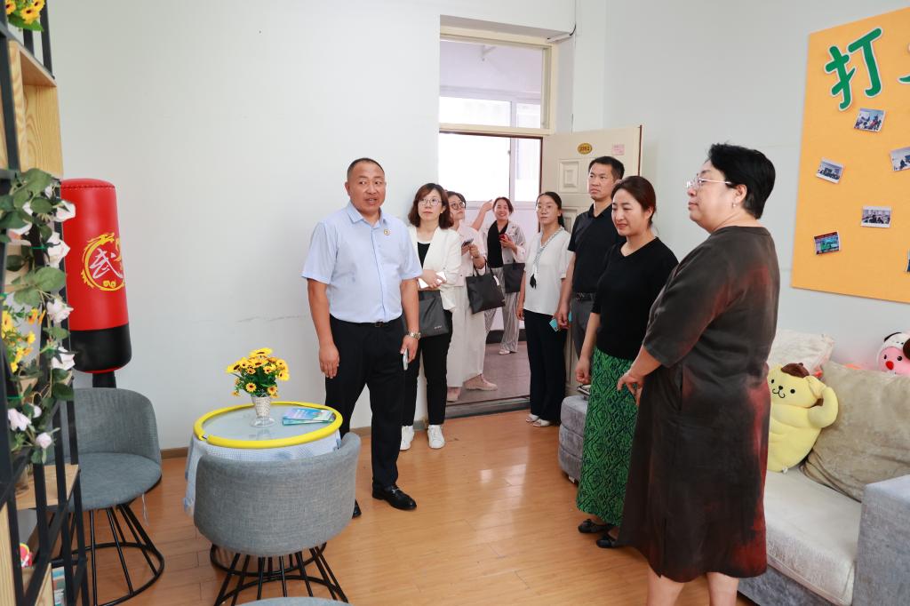 专家组在学校党委书记郭伟东、常务副院长陈景鑫陪同下,实地走访了心理健康教育中心、辅导员心理工作室、信息工程系二级辅导站等场所,并与相关人员进行深入交流。