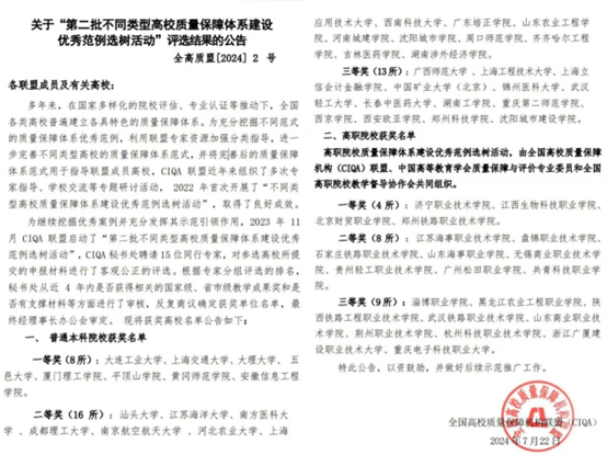 为加强学校内部质量保障体系建设,扎实推进学校人才培养工作高质量发展,由全面质量管理办公室组织申请,资格认证,学校于2019年6月7日正式加入全国高校质量保障机构联盟(CIQA),成为联盟理事单位。截至目前,联盟成员单位共有本、专科高校575家。