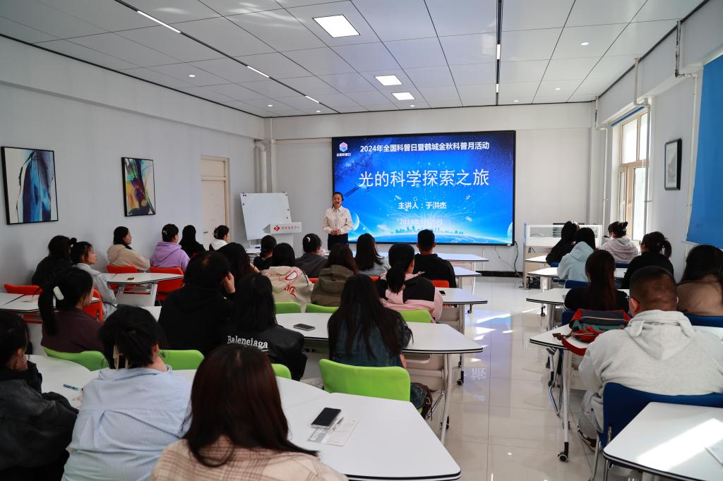 省科普专家人才库专家于洪杰在二号教学区教2102室作《光的科学探索之旅》科普讲座。