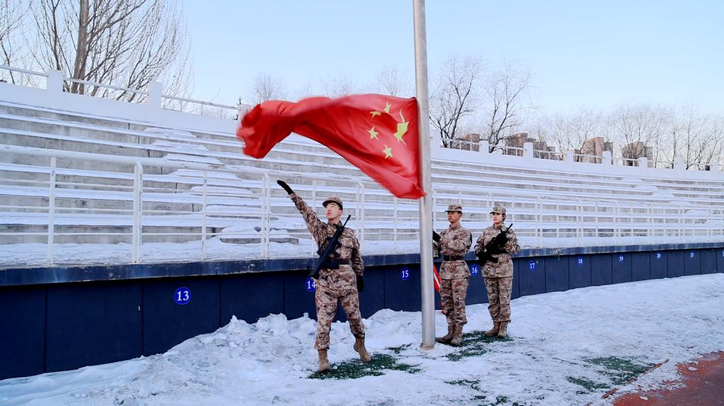 随着《义勇军进行曲》的奏响,国旗在晨光中冉冉升起,全体师生面向国旗,庄严行礼,高唱国歌。