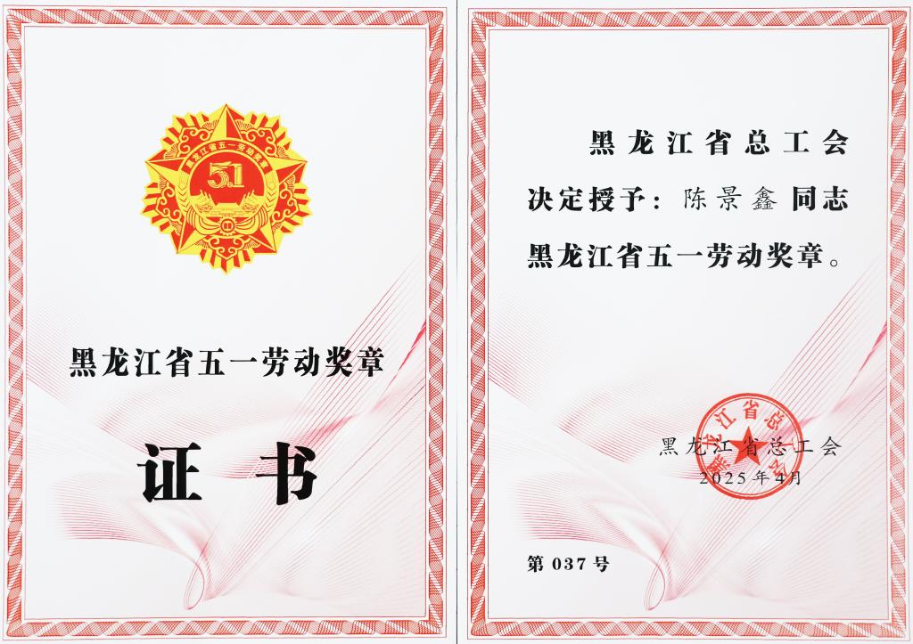 4月29日,永远跟党走 奋进新征程——庆祝中华全国总工会成立100周年省五一劳动奖、工人先锋号颁奖暨第二届“龙江工匠年度人物”发布仪式在黑龙江广播电视台演播厅举行。Beat365党委副书记、副院长陈景鑫荣获黑龙江省五一劳动奖章。齐齐哈尔市共有九名各行业人员获此殊荣。