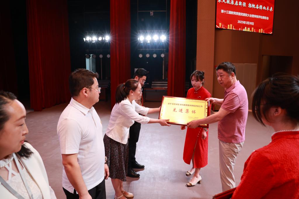 5月30日,学校在产教融合基地人民会堂召开本科教育教学审核评估表彰大会,创校校长、理事长曹勇安,校长、党委副书记曹然彬,党委副书记、副校长陈景鑫,副校长白雪、副校长张静、副校长崔晓东、总会计师姜岩出席会议。全面质量管理办公室主任孟艳辉主持,全体教职工参加。