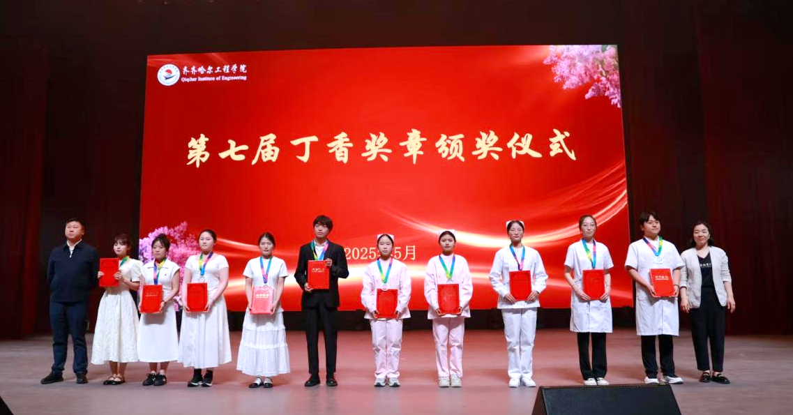 白雪、张静为机电学院、土木与管理学院的丁香学子代表颁发丁香奖章和证书。