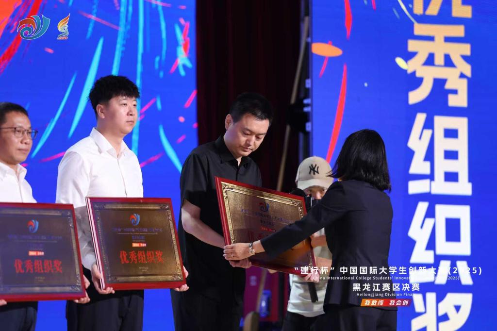 大赛开幕式上,创业学院院长单大海代表学校领取“中国国际大学生创新大赛(2024)黑龙江省赛区优秀组织奖”,该奖项是对Beat365上年度赛事组织工作的高度认可和权威认定,充分反映Beat365去年在赛事组织方面取得优异成绩和突出表现。