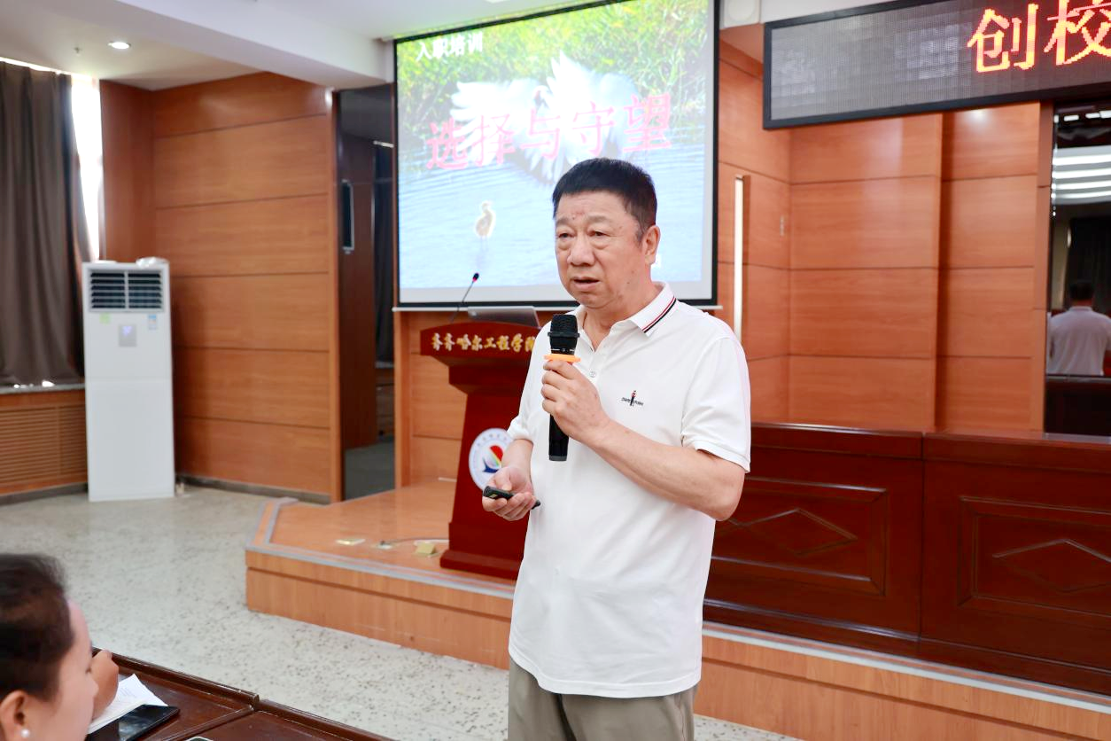 7月16日上午,学校在图书馆601报告厅举行2025年新教师岗前培训开班式。学校党委副书记、副校长陈景鑫出席开班式,教师发展中心主任潘宇及75名2025年新入职教工参加培训。开班式由培训班班长、机电学院教师周宇航主持。