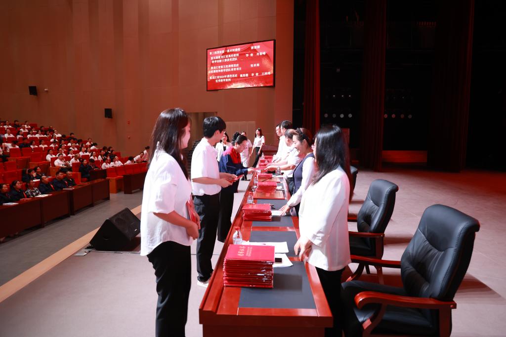 学校领导为受到表彰的先进集体代表和优秀个人依次颁奖。