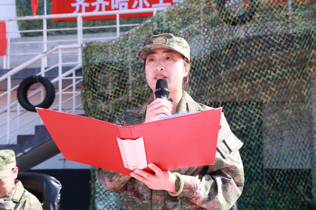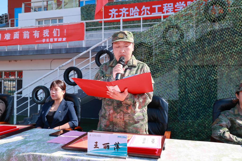 王丽萍宣读《关于表彰2025级学生军训先进集体及先进个人的决定》。