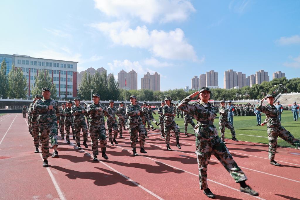 在随后的分列式上,新生方阵步伐整齐、口号嘹亮,以昂扬的风貌接受检阅,充分展现了军训的优异成果。