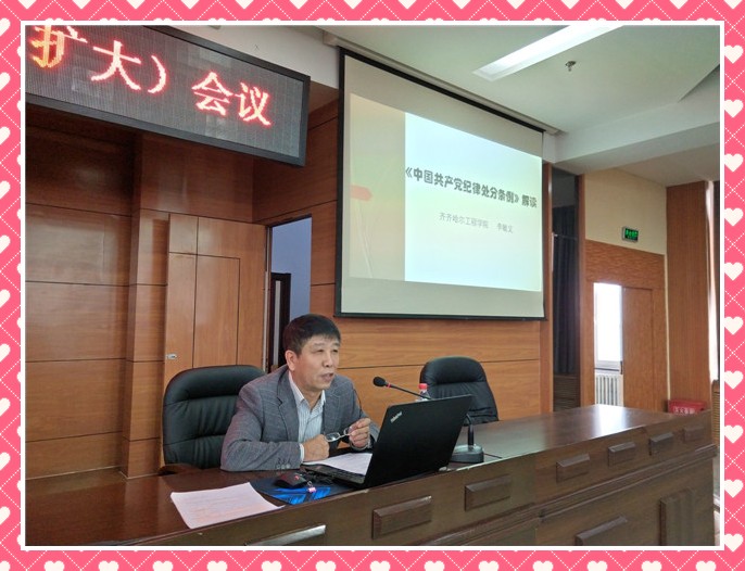 10月27日上午,学院党委召开理论学习中心组学习(扩大)会,专题学习新修订的《中国共产党纪律处分条例》。党委书记李敏义等学院党政领导班子成员与全体党员干部参加集体学习————