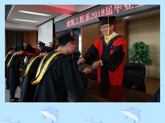 7月6日,学院6个系分别举行2018届毕业生典礼暨学位授予仪式,共有1041名本科学生、607名高职学生顺利毕业————