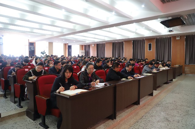 在上午的大会上,学院院长曹然彬作题为《抓评估 优课程 育新人 全力创建应用型本科示范高校》的行政工作报告。报告从学校办学影响力不断扩大、教育教学改革不断深化、学生工作强化学风建设、科研工作进一步加强、评建工作稳步推进五个方面,回顾了学院2018年取得的主要成绩并剖析存在的主要问题及不足,强调当前我国高等教育改革不断深化,对新时代本科教育提出更高要求。特别是《国家职业教育改革实施方案》的出台,以及我省推进地方本科高校转型发展、创建应用型本科示范高校的举措,为我们学院教育事业的发展带来大好机遇,务必抓紧抓牢。