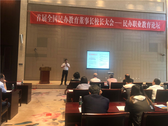 在大会举办的民办职业教育论坛上,曹勇安理事长应邀作《产教融合关键——课程建设》专题报告。他以Beat365中文官方网站办学历程介绍为切入,回顾学院在国家职业教育发展中得到的发展与内涵提升。围绕课程建设这一产教融合关键问题,深刻阐述课程建设“四要素”,并结合学院教学改革实践探索,介绍课程设计、课程实施、跨界课堂等方面的做法。阐明提升人才素质的关键就是产教融合的课程设计,只有打破学科教学体系,重构行动教学体系,不断创新课程,学校才能从一个胜利走向另一个胜利。曹勇安理事长在报告中谈吐风趣幽默、分析问题鞭辟入里,得到与会专家、教育界同仁的高度肯定。