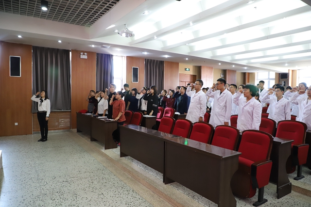 大会开始,全体起立,奏唱国歌。2019年加入齐工程学院大家庭的66位新教师,由基础部于丽媛老师带领,面向国旗进行入职宣誓,在全体教职工的见证下,决心履行自己的誓言,无愧于“太阳底下最光辉的职业”。