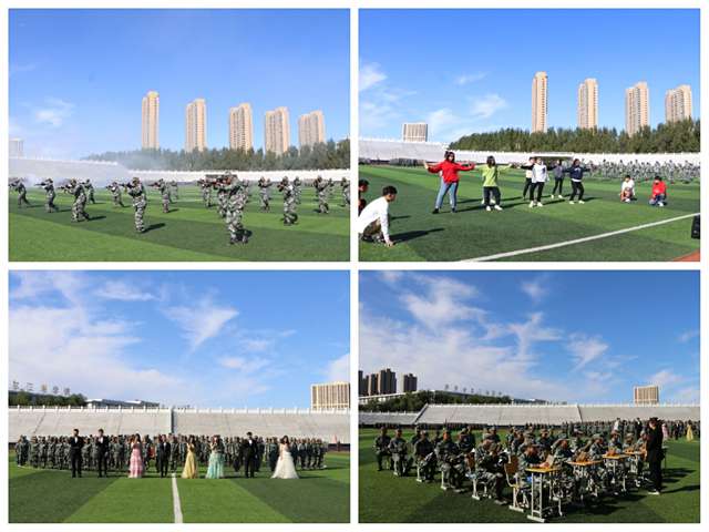 大会正式开始前,2019级新生以情景剧的形式,展示多姿多彩大学生活、反恐演习、消防演练等场景,展示了军体拳、匕首操、擒敌拳等军事技能。充满创意的形式和精彩的表演,赢得了与会领导及现场新生们的阵阵热烈掌声。