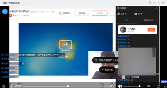 李文禹老师线上教的是什么课?他说:“本次线上授课,自己承担财管2019级的《经济学原理》的授课任务,选用钉钉学习圈、QQ群和腾讯课堂平台进行授课。根据学生特点,及时下达了课前预习任务,根据学生的课前反馈不断修改完善课件内容,融入更多案例与思考;进行目标导向课程流程设计,让学生提前知晓每次课程的主要流程和内容,并做出课后答疑准备。”