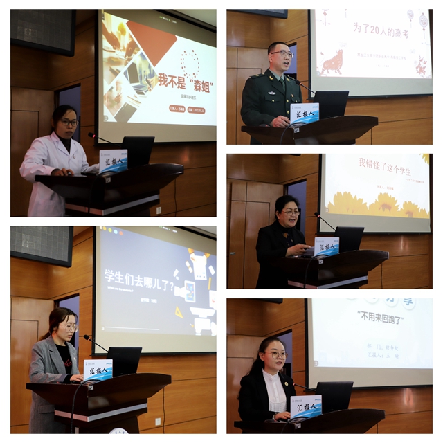 图文信息中心(图书馆)刘阳以《学生去哪儿了?》为题,东亚技职校王海洪以《为了20人的高考》为题,健康与护理系苏森森以《我不是“森姐”》为题,学生工作处刘丽娜以《我错怪了这个学生》为题,财务处王瑜以《不用来回跑了》为题,分别代表所在部门分享了精彩的案例故事,进而认真总结与反思工作,并提出改进思路和努力方向。