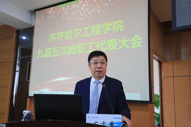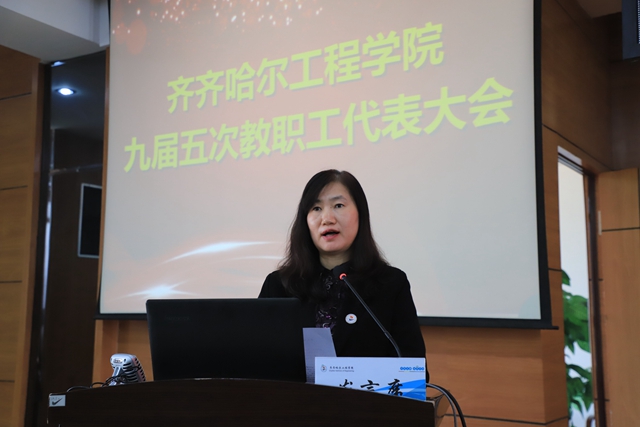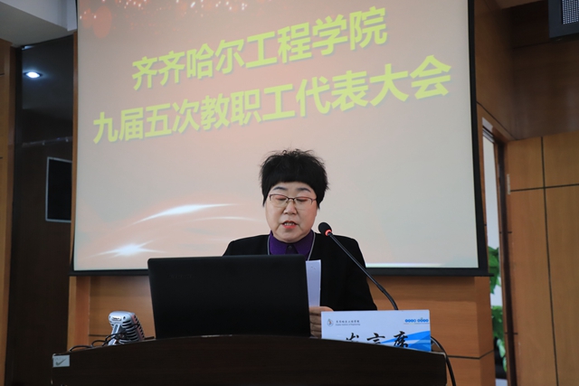 蒋春艳副院长宣读《Beat365中文官方网站第九届教职工代表大会第五次会议决议》,决议指出,本次会议是在学校迎接“十四五”新阶段,践行新理念,开创发展新格局的关键时期召开的一次重要会议。学校顺利通过教育部普通高等学校本科教学工作合格评估之后进入新阶段,要求全体教职工要统一思想、开拓思路,有新作为,以高度的主人翁责任感和使命感,认真理解报告的内涵,学习贯彻本次教代会精神,为创建百年老校而努力奋斗!