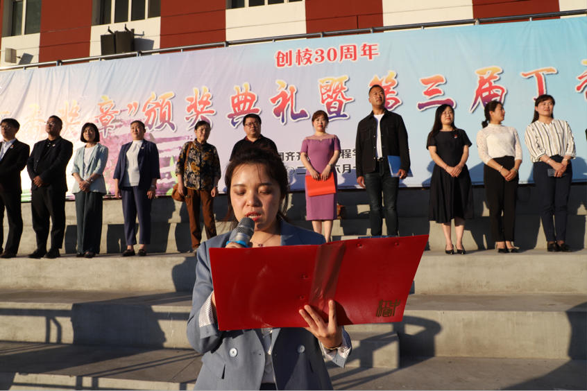 学生工作处负责人高爱利宣读《关于表彰2021“丁香奖章”获得者的决定》,明确2021年丁香奖章授予最爱读书的学生,以此倡导好读之风,创设书香校园。