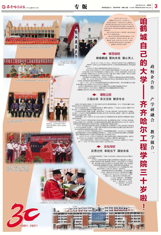 夏风习习,草木葳蕤。学校将迎来创校30年喜庆时刻。学校的发展史,是一部自强不息的奋斗史,一代代齐工程人本着“中而至庸、和而不同”的校训,时刻践行“为融入社会走进来,为服务社会走出去”的理念和精神传承,在为党育人、为国育才、追求卓越的道路上不断前进。如今学校正处在全面开启事业发展新征程的战略机遇期,30周年校庆是学校承前启后、继往开来的里程碑,是拼搏奋进、再创辉煌的新起点,是凝心聚力、共谋发展的新契机。
