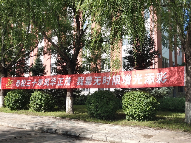 一条条巨幅标语,渲染了校园喜庆的气氛。