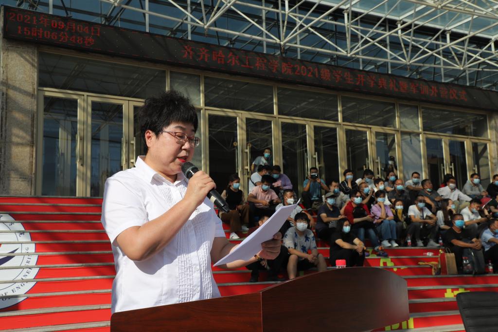 学校副院长蒋春艳宣读《2021级学生军训实施方案》。