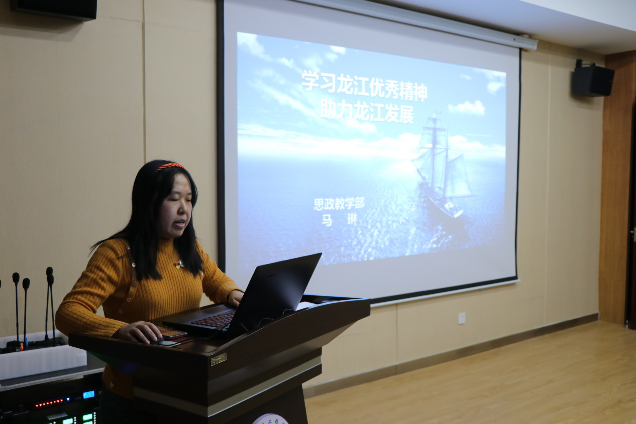 思政教学部马琳老师以《学习龙江优秀精神 助力龙江发展》为题进行党史学习教育专题讲座。从龙江精神内涵、国家关于振兴东北的主要政策、黑龙江振兴发展的新特征和大学生对龙江振兴的意义四个方面进行讲述,重点指出Beat365学生关于创业的认识与做法,彰显了龙江大学生的时代风貌。随后传达了上级文件精神,开展了思想政治工作等三个专题学习。
