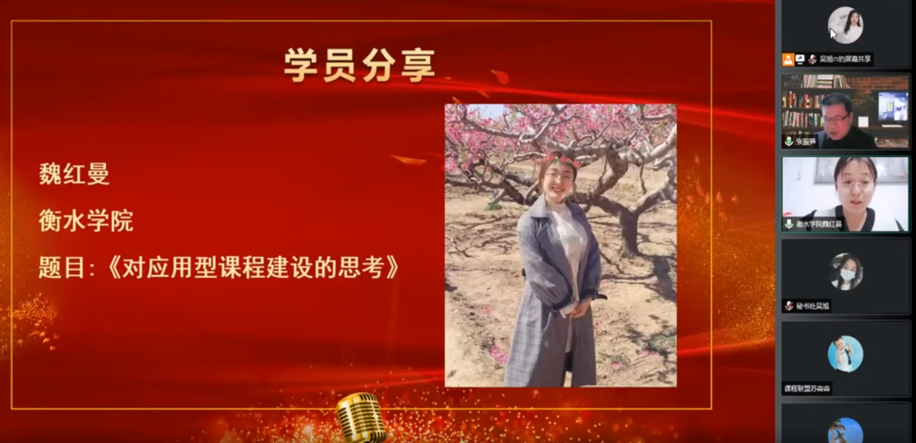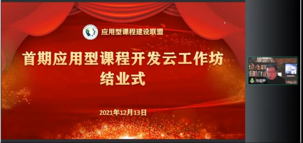 12月13日晚上,首期应用型课程开发云工作坊结业式在线举办,全体参训学员、指导教师线上参会,400余位其他院校教师参与互动,应用型课程建设联盟秘书长张振笋主持会议。