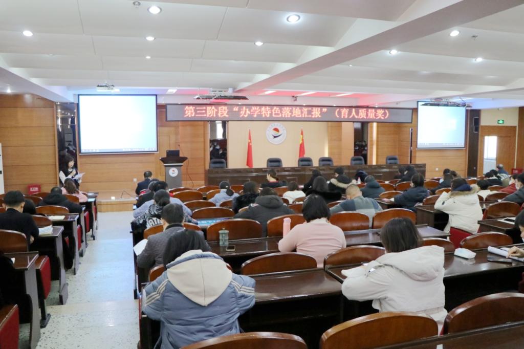 1月5日,学校第三阶段第三次“办学特色落地汇报”会在图书馆601进行,此次汇报会围绕反思和“育人质量奖”展开,校领导曹勇安、曹然彬、姜岩、张振笋、白雪,以及全校干部、辅导员、汇报选手、工作人员参加。