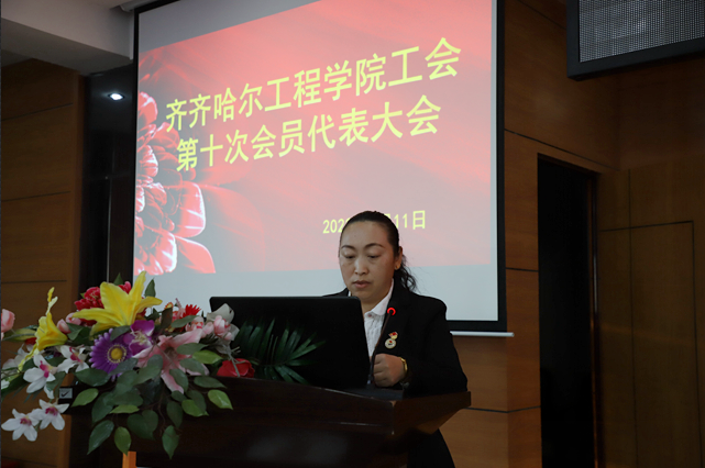 党委书记张长娟发表讲话,她充分肯定了学校工会九届委员会忠诚履职,积极服务,为学校建设发展作出的积极贡献,并对新当选的工会委员表示诚挚祝贺。特别是就坚持政治引领,提高思想站位;强化责任担当,增强工会工作使命感;坚持务实创新,提高工会工作水平三方面对新当选的工会委员提出殷切嘱托。同时希望全体教职工牢记初心使命,勇于开拓创新,矢志不懈奋斗,在加快推进学校建设的新征程中作出新的更大贡献。