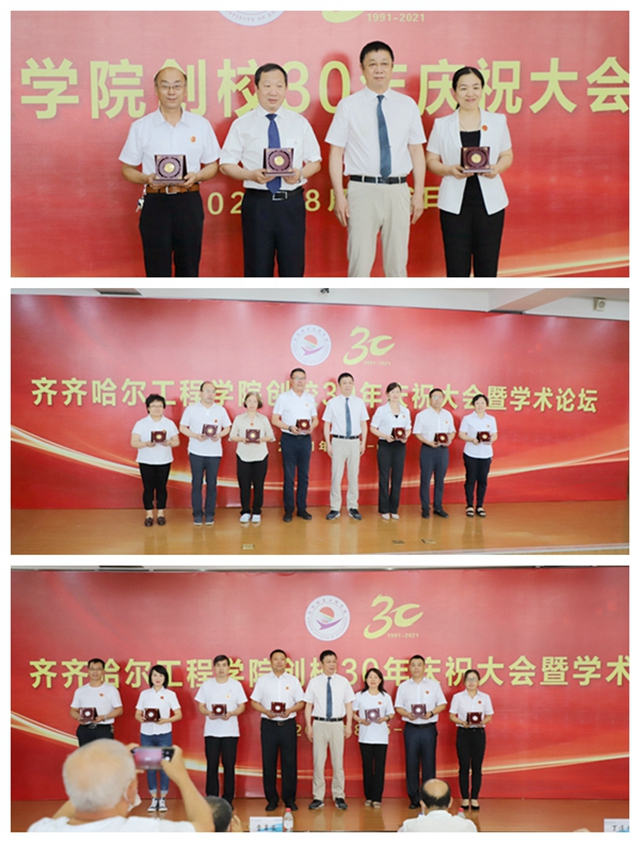 会上,创校校长、理事长曹勇安教授为在学校从教30年与20年的教师代表颁发金质和银质奖章,在创校30年的喜庆时刻,学校用这种方式表彰为学校发展辛勤工作、无私奉献的所有教工。