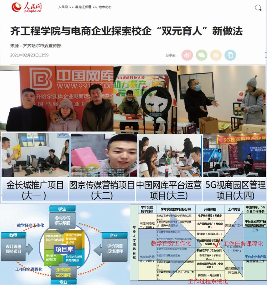 服务地方能力显著增强。加强了与甘南、讷河、泰来等地方政府、企业合作,向农村劳动力、失业人员、残疾人开展电商直播、电商创业、自媒体营销、农产品电子商务运营等多种形式培训,各专业参加培训教师10人,累计培训208学时,累计培训596人。