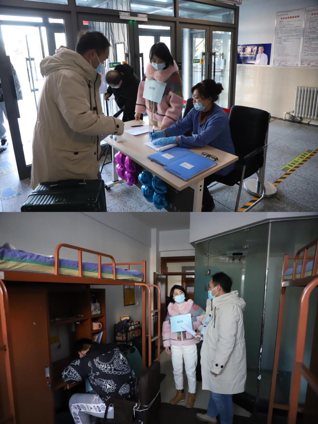 建筑系辅导员扮演“学生”,现场模拟了返校学生出现发热、乏力的场景,辅导员第一时间赶到现场,启动应急预案,隔离本寝室学生、封闭现场环境等待下一步工作处置。