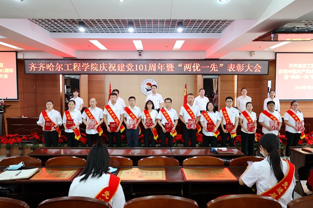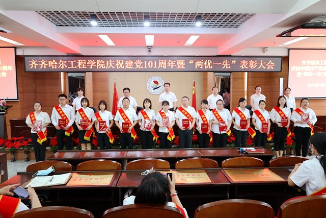 为庆祝中国共产党成立101周年,迎接党的二十大胜利召开,7月1日下午,学校在图书馆601报告厅召开庆祝建党101周年暨“两优一先”表彰大会,一批在学校各项事业建设中涌现出的先进基层党组织、优秀党务工作者和优秀共产党员受到表彰奖励。学校党委书记郭伟东出席会议并讲话,会议由院长、党委副书记曹然彬主持,校领导、党委委员、各党总支(直属党支部)、基层党支部的书记和委员,师生党员代表,受表彰的先进集体代表和优秀个人现场参会,其他党员线上参会。