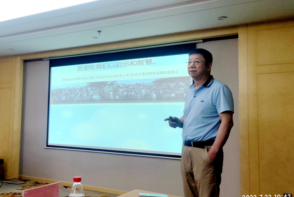 研讨会上,曹勇安理事长以详实的数据、清晰的脉络和生动的语言,深入阐述了我国民办高校改革发展的“昨天、今天、明天”。他指出,生存与发展是中国民办教育的基本问题。站在今天,回顾昨天,思考明天,是研究和分析问题的基本思维。比较研究的出发点是发现长短,落脚点是取长补短、扬长避短。任何事物的现实成果,都包含着成功与失败、经验与教训。经验指导我们:面对未来往前看,看出高度、看出档次,增强我们必胜的信心;教训指导我们:面对未来往后看,看出回避、看出忌讳,用智慧去迎接新事物。