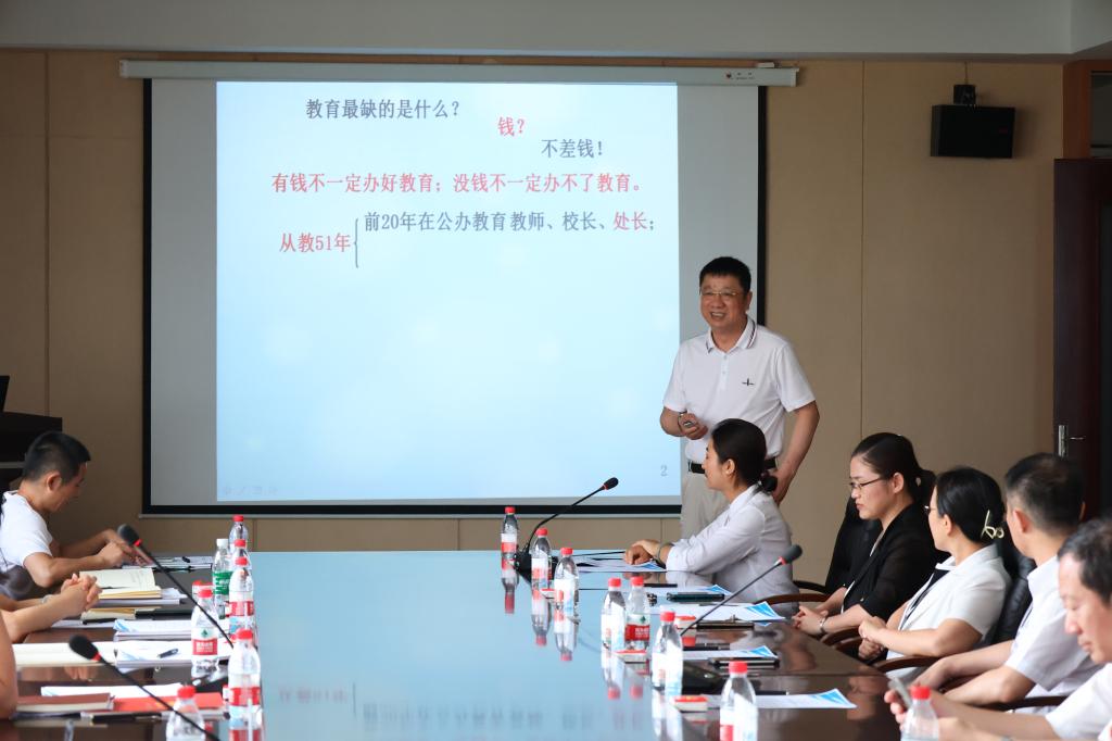 理事长曹勇安对考察团各位领导来校表示诚挚欢迎,并深情回顾了学校31年的发展历程,讲述自己前20年在公办教育,后31年创办民办学校以及一代人艰苦奋斗的历史,历数学校改革发展的脉络及每一个阶段发展进程中取得的丰硕成果,如数家珍,深入人心。同时,曹理事长表达了将学校举办者由其本人变更为中华职教社的意愿。