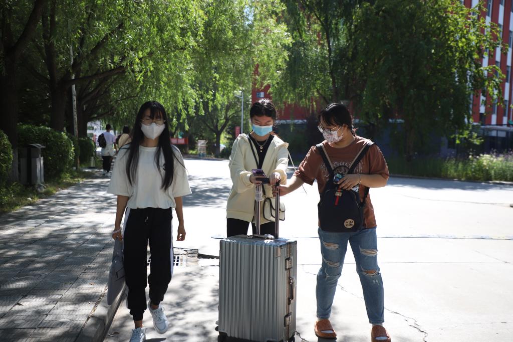 管理工程系的大二学生史妍,挽着专程来迎接她的两位室友,笑着说:“好开心,一进校门就感受到同宿舍好友的温暖,我太想念老师和同学了,又能在一起愉快地学习和玩耍了,当然,我也很想念食堂丰盛的菜品。”