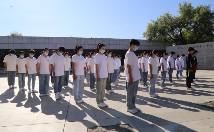 9时整,伴随着防空警报响起,师生们庄严肃立,在防空警报声中共同默哀10分钟,表达对革命先辈们的崇高敬意和缅怀之情。