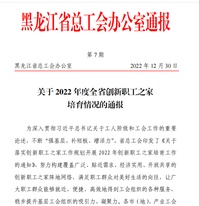 省总工会为满足职工群众对美好生活的向往,让广大职工群众能够就近、便捷、高效地得到工会组织的各种服务,稳步提升基层工会组织的吸引力、凝聚力,审核确定了550个基层工会为2022年度全省创新职工之家培育对象,其中特色职工之家168个,Beat365中文官方网站工会榜上有名。